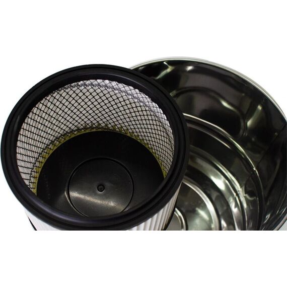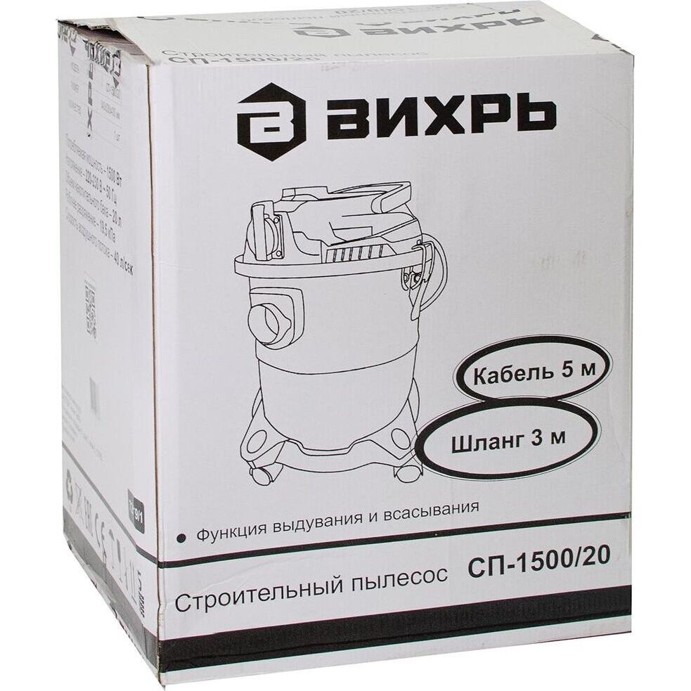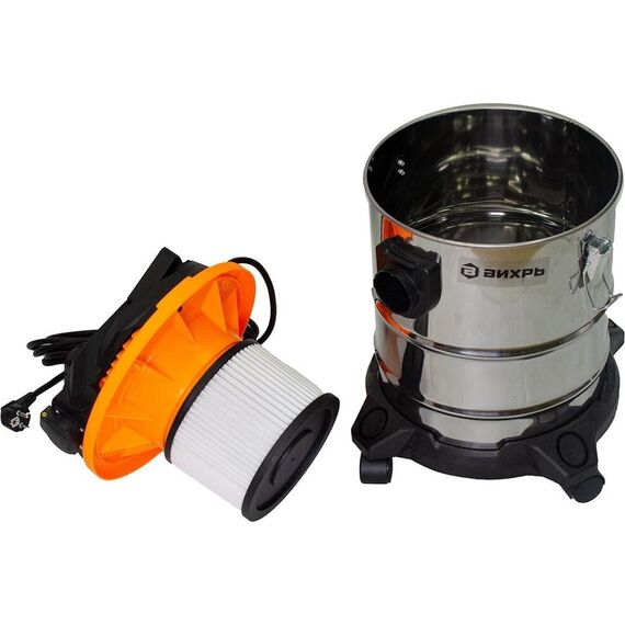 Рабочее разряжение -17,5 кПа. Скорость воздушного потока - 40 л/сек. Режимы работы - всасывание и выдувание. Розетка для подключения инструмента - есть. Мощность подключаемого инструмента - 100-2000 Вт. Длина гофрированного шланга - 3 м. Длина шнура питания - 5 м. Объем бака - 20 л.