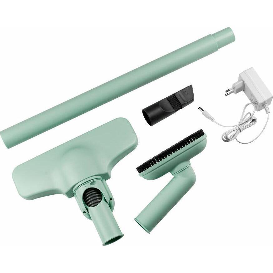 GALAXY LINE GL 6221 МЯТНЫЙ Аккумуляторный пылесос, мощность 130 Вт, мощность всасывания до 30 аэроватт, два уровня мощности всасывания, объем контейнера 0,3 л, HEPA-фильтр H12, продолжительность уборки до 30 минут, зарядка в течение 3,5 часов, Li-ion аккумулятор емкостью 2200 мА*ч, напряжение аккумулятора 18,5 В, индикатор заряда батареи, циклонная система сбора пыли, инновационная система фильтрации, 3 насадки: универсальная насадка для пола и ковровых покрытий, насадка-щётка для мебели, щелевая насадка, упакован в цветную коробку