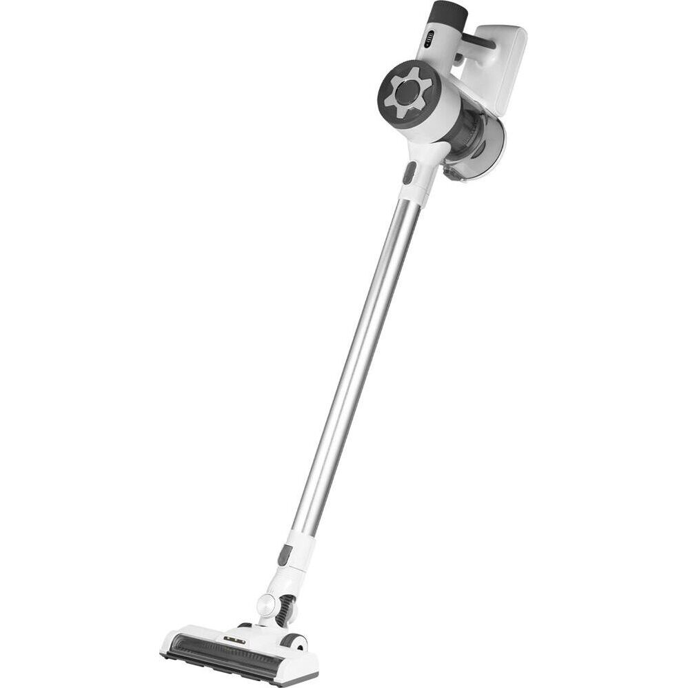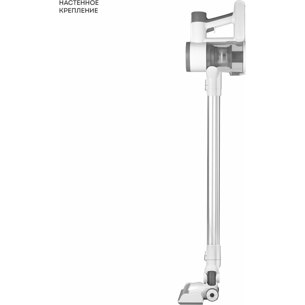 Пылесос Galaxy LINE GL 6295, белый с серым, аккумуляторный, 130 Вт, 0,4 л, Li-ion акк. 2200 мА•ч, напр. акк. 22,2 B, мощн. всас. 30 аэроват, 2 уровня мощн. всас., зарядка 5 ч, уборка до 40 мин, уровень шума 78 Дб, 3 насадки: универсальная электр. щётка с