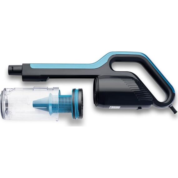 Тип Ручной пылесос Тип уборки сухая Мощность 1000 Вт Мощность всасывания (Вт) 120 Вт Уровень шума 80 дБ Работа с контейнером для пыли ДА Объем пылесборника 0.8 л Конструкция Регулировка мощности на ручке Труба для всасывания цельная Фильтр тонкой очистки ДА Насадки Общее количество насадок 2 шт Питание Тип электропитания от бытовой электросети Длина сетевого шнура 5 м Корпус Цвет черный Дополнительный цвет бирюзовый Другое Габариты упаковки (ед) ДхШхВ 0.592x0.215x0.229 м