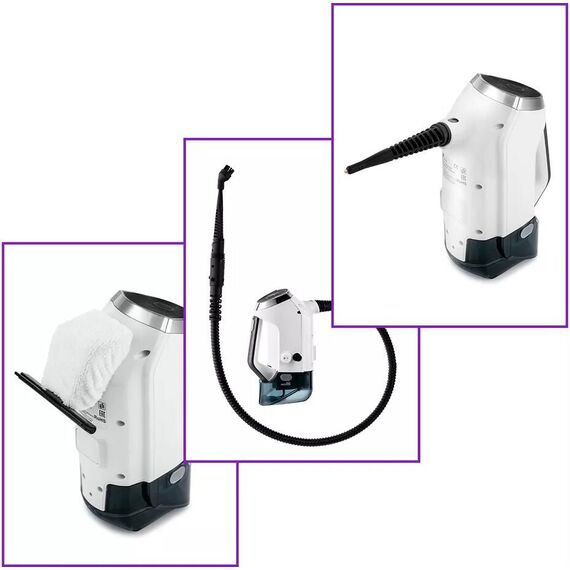 Мощность; 1800 Вт; Пылесборник; 0,5 л; Тип пылесоса; проводной; Время нагрева; 30 сек; Ёмкость резервуара для воды; 0,3 л; Длина шнура; 6,9 м; Подача пара; 25 г/мин; Время подачи пара при полном резервуаре; 10-30 мин (зависит от выбранного уровня интенсивности пара); Уровень шума; 89 дБ; Размер устройства; 255 х 240 х 1180 мм; Размер упаковки; 310 х 226 х 695 мм; Вес нетто; 5,8 кг; Вес брутто; 7,4 кг;