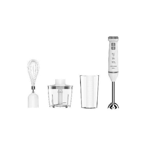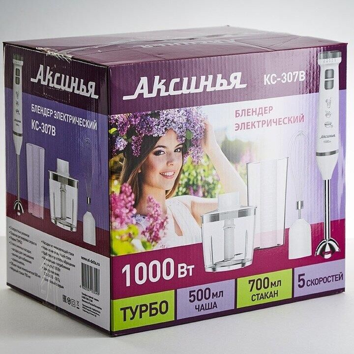 Номинальная потребляемая мощность 1000 Вт Объем чаши измельчителя 500 мл Объем мерного стакана 700 мл Блендер представляет собой многофункциональное устройство для смешивания, измельчения и взбивания продуктов и жидкостей в бытовых условиях Нож и насадки из нержавеющей стали Три сменных насадки: насадка для смешивания венчик для взбивания измельчитель Мерный стакан 5 скоростных режимов Режим «ТУРБО» Плавное переключение скоростей Цвет: белый с серым Производитель: Россия