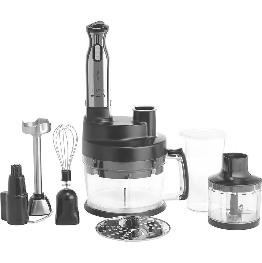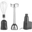 Мощность 1200 Вт, 2 основных скорости, Удобные кнопки управления, LED-индикатор работы, Плавный регулятор мощности, Экологичный пластиковый корпус, Пластиковый стакан с крышкой 600 мл, Система 6 в 1: Миксер, ручной блендер, насадка-тестомес, диск для шинковки, чоппер объемом 500 мл, контейнер для нарезки кубиками объемом 2 литра.