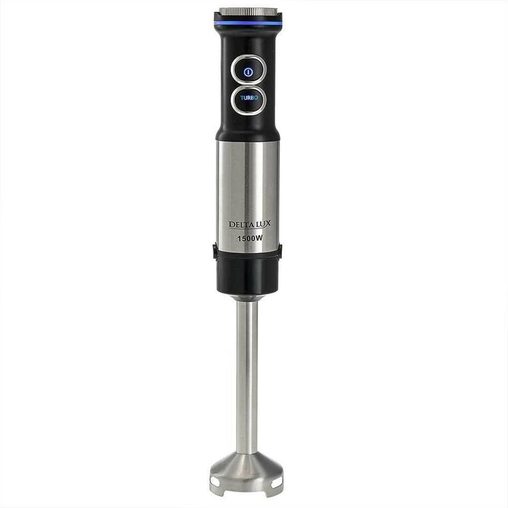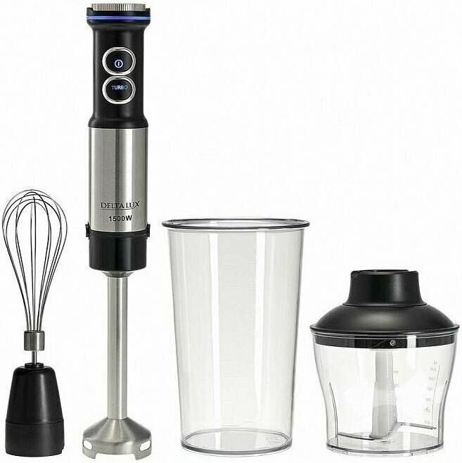 Максимальная мощность 1500 Вт Номинальная потреблямая мощность 1200 Вт Объем чаши измельчителя 600 мл Объем мерного стакана 800 мл Описание Блендер идеально подходит для приготовления супов-пюре, соусов и подлив, детского питания, смешивания разнообразных коктейлей, измельчения продуктов в бытовых и аналогичных условиях Корпус из нержавеющей стали и гигиеничного пластика Цвет: черный LED-подсветка Насадки и нож из нержавеющей стали Три сменных насадки: насадка для измельчения и смешивания венчик для взбивания измельчитель с крышкой Мерный стакан Плавное переключение скоростей Режим «ТУРБО» Упаковка: цветная коробка