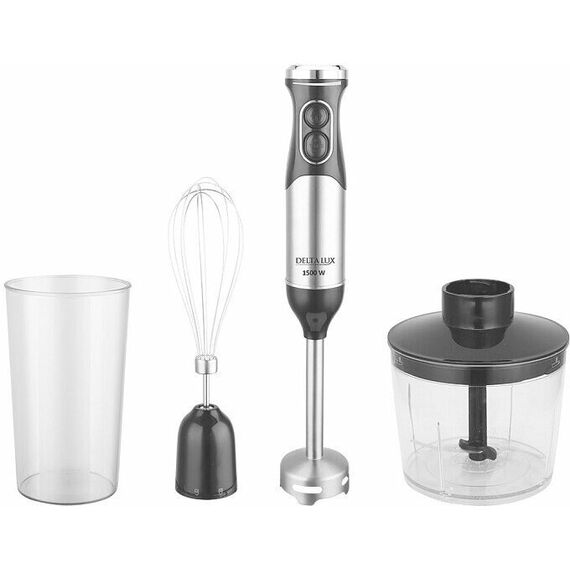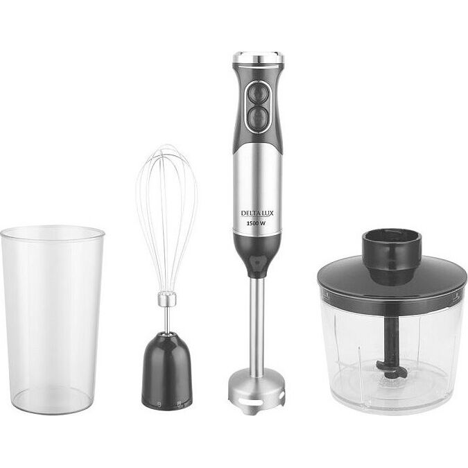 Параметры Максимальная мощность 1500 Вт Номинальная потребляемая мощность 600 Вт Объем чаши измельчителя 500 мл Объем мерного стакана 700 мл Описание Блендер электрический предназначен для смешивания, измельчения и взбивания продуктов и жидкостей в бытовых и аналогичных условиях Цвет: нержавеющая сталь с черным Ножи из нержавеющей стали Специальная заточка ножей Мерный стакан Три сменные насадки: насадка для смешивания венчик для взбивания измельчитель Противоскользящие ножки чаши измельчителя Плавная регулировка скорости Режим «ТУРБО» Упаковка: цветная коробка
