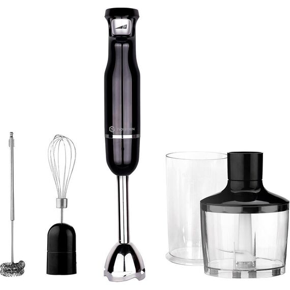 Номинальная мощность - 600 Вт. Пиковая мощность - 900 Вт Скорость вращения в турборежиме - 14 000 об/мин +- 10%. Плавная регулировка скорости – одной кнопкой. Максимальное нажатие активирует «Turbo» режим. Мощный и тихий цифровой мотор. Металлические ножи из нержавеющей стали. Оснащен системой автоматического отключения при перегреве. Удобная петля для подвешивания. Размеры упаковки: 228 х 132 х 243 Комплектация: основной блок, стакан для смешивания объемом 600 мл с удобным носиком, чаша измельчителя объемом 860 мл с S-образным ножом из нержавеющей стали, насадка - блендер из нержавеющей стали, венчики для взбивания, вспениватель молока, руководство по эксплуатации.