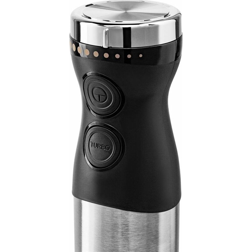 Тип погружной Мощность 800 Вт Бесступенчатый регулятор скорости Турборежим Режимы Количество скоростей / режимов 1 Питание Электропитание от сети Цвет серебристый Материал корпуса нержавеющая сталь/пластик Материал ножей нержавеющая сталь Дополнительный цвет черный Материал погружной части нержавеющая сталь В комплекте Венчик для взбивания Измельчитель в комплекте Мерный стакан Срок гарантии 12 мес.