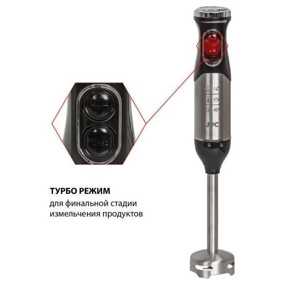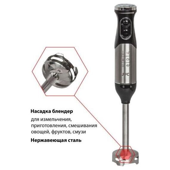 Блендер погружной, набор, максимальная мощность 1200 ватт, регулировка скорости, режим ТУРБО, светодиодная подсветка , мерный стакан 600 мл, венчик для взбивания, венчик для вспенивания молока, петля для подвешивания, длина кабеля 1,15 м.