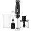 Блендер погружной. Мощность: 1200 вт, Количество скоростей: 2, Турборежим, Плавная регулировка скорости, Управление: механическое, Материал корпуса: пластик, Материал погружной части: нержавеющая сталь, Емкость измельчителя: 500 мл, Емкость мерного стакана: 700 мл, Венчик для взбивания, Мерный стакан, Длина сетевого шнура: 130см, Измельчитель, Цвет: Черный