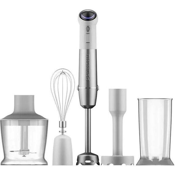 Блендер погружной Тип управления электромеханический Номинальная мощность 1600 Вт Максимальная мощность 1800 Вт Материал корпуса металл пластик Скорость работы в основном режиме 10000 - 15000 об/мин Режим турбо Скорость работы в турборежиме 15000 об/мин Плавная регулировка скорости Скорости работы плавная регулировка скорости Чаша измельчителя Мерный стакан Материал погружной части металл Объем чаши измельчителя 500 мл Объем мерного стакана 600 мл Объем стакана для смешивания 600 мл Цвет корпуса серый Насадка-блендер Насадка-венчик Насадка-пюре Форма ножа 4-лепестковый с титановым покрытием Защита от поражения электрическим током класс II Защита от перегрева Защита от перегрузки Индикация светодиодная Длина шнура электропитания 1,1 м Габаритные размеры 60 × 430 × 67 мм Вес нетто 1,6 кг ± 3% Комплектация блок электродвигателя насадка-блендер насадка-венчик переходник для насадки-венчика стакан для смешивания насадка для приготовления пюре чаша измельчителя с крышкой S-образный нож