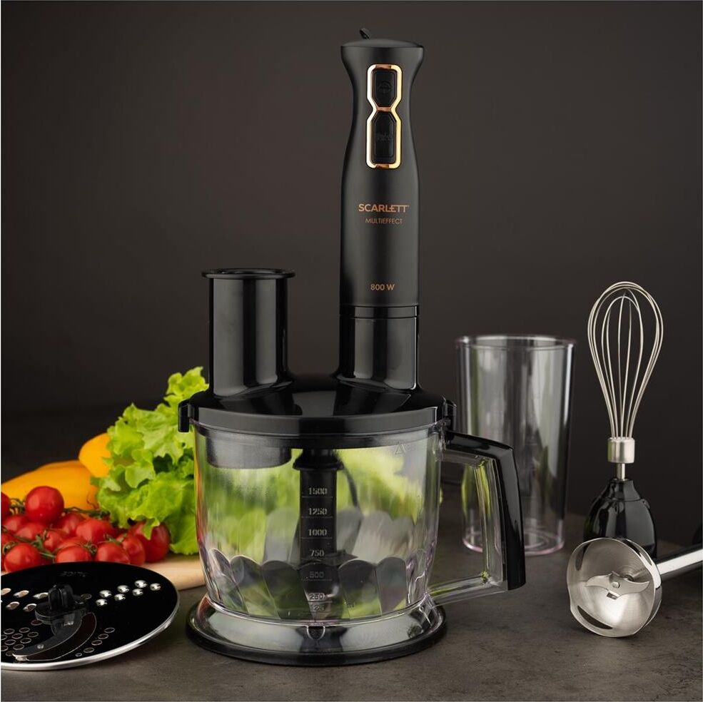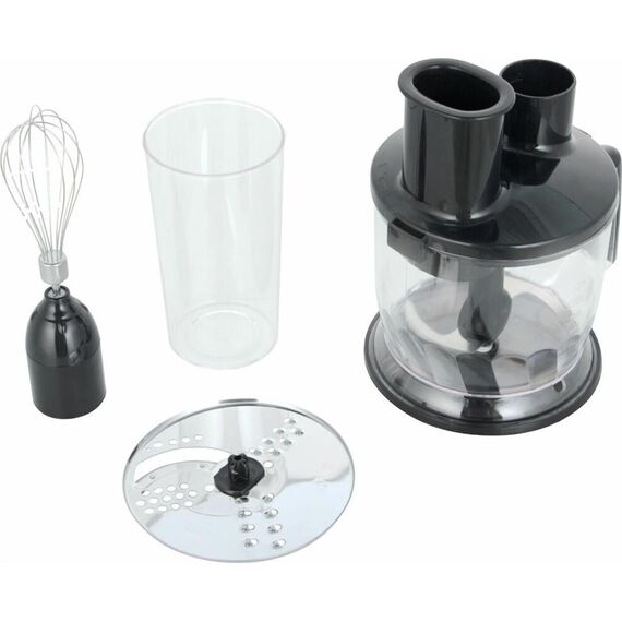 Тип: Погружной Мощность, Вт: 800 Количество скоростных режимов: 2 Режим TURBO: Да Мини-измельчитель: Да Емкость мини-измельчителя, л: 1.5 Мерный стакан: Да Мерный стакан, л: 0.6 Тип ножа: MULTIEFFECT Дополнительные насадки: диск для терки и шинковки Аксессуары в комплекте: Крышка для хранения готового продукта Длина электрошнура, м: 1.1 Цвет: Черный