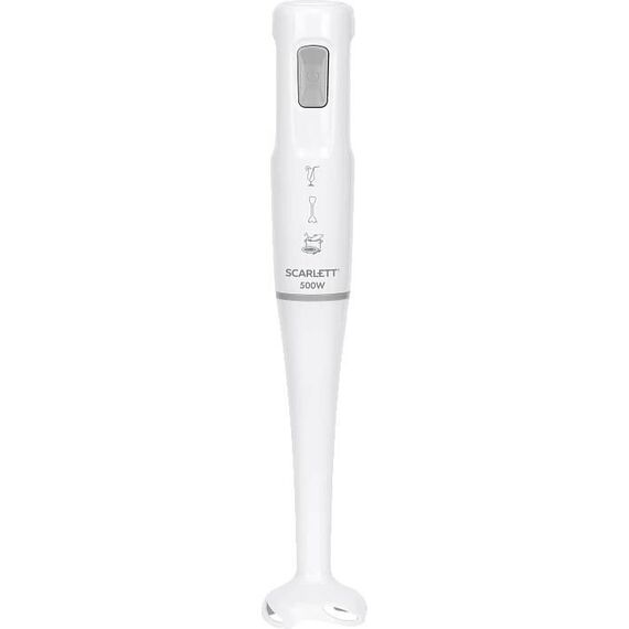 Тип: Погружной; ; Мощность, Вт: 500; ; Количество скоростных режимов: 1; ; Мерный стакан: Нет; ; Насадка-блендер: Да; ; Материал погружной части насадки-блендера: Пластик; ; Скорость работы, об/мин: 13000; ; Мойка в посудомоечной машине: Насадка-блендер; ; Цвет: Белый; Погружной блендер Scarlett SC-HB42S12 – универсальное устройство, выполненное в классическом белом дизайне, дополненном серой кнопкой.; ; Прибор компактен и многофункционален, он легко измельчит и смешает любые ингредиенты.; ; Это незаменимое приспособление, способное максимально облегчить работу на кухне и подарить вам время для отдыха.; ; Блендер оптимальной мощностью 500 Вт управляется одной кнопкой.; ; Нож прибора изготовлен из долговечной нержавеющей стали марки STEEL PRO. ;