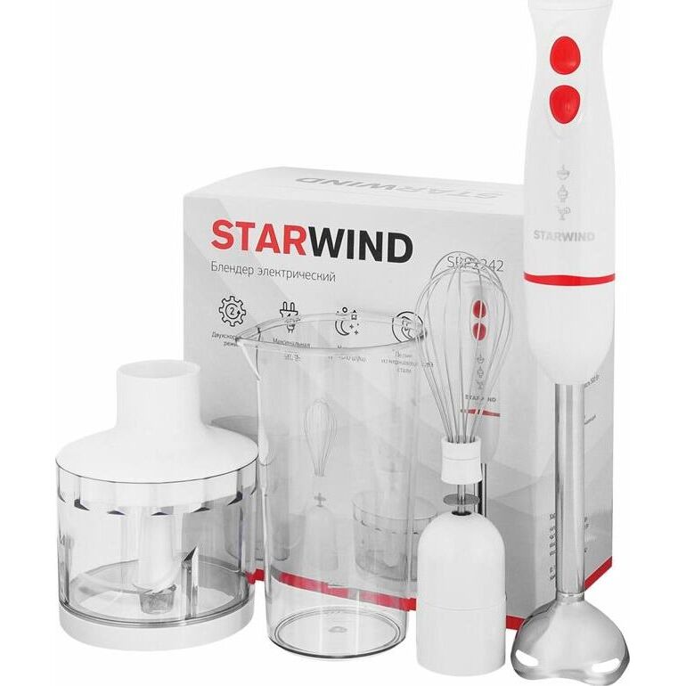 Блендер погружной. Мощность 500 Вт, Количество скоростей/режимов 2, Материал погружной части нержавеющая сталь, Материал ножей нержавеющая сталь, Насадки в комплекте, Измельчитель, Венчик для взбивания, Мерный стакан, Электропитание от сети, Материал корпуса пластик, Цвет белый/оранжевый, Гарантия 12 мес.