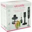 Погружной блендер, мощность 750W, современный эргономичный дизайн, пульсовый режим работы, 2 скорости, лезвия из нержавеющей стали, металлическая нога блендера, венчик для взбивания, насадка для приготовления пюре, чаша с ножом для рубки и измельчения, 400 мл; автоматическая блокировка при неправильно установленной насадке, удобство и простота в обращении и чистке.