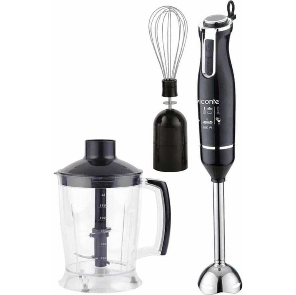 Напряжение: 220-240В/50-60Гц; Мощность: 950Вт; Объём чаши измельчителя: 1250мл; Режим "Турбо"; 2 скоростных режима работы; Металлическая погружная часть; Венчик для взбивания; 4 ножа из нержавеющей стали; Петелька для подвешивания.