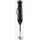 Прибор предназначен для смешивания жидкостей и мягких ингредиентов. Снабжен новым электромотором с мощным и мягким звучанием без вибраций. Корпус блендера выполнен из чёрного пластика с покрытием SOFT TOUCH, что придает ему стильный вид и добавляет комфорта при использования. На блендере установлена кнопка включения блендера, а также TURBO кнопка высокоскоростного режима. На верхней части корпуса расположен регулятор скорости работы мотора. По бокам корпуса расположены кнопки для снятия сменных насадок. В комплект к изделию входит стальная насадка измельчитель твёрдых продуктов – зелени, орехов или овощей, венчик для взбивания яичных белков, сливок, десертов и пластиковый стакан с мерной шкалой до 600мл. В дополнение прилагается насадка с чащей на 500 мл для измельчения овощей, мяса и приготовления салатов. На дне чаши установлены прорезиненные ножки. В комплект также входит насадка для приготовления картофельного пюре с пластиковым шнеком. Длина сетевого шнура 118 сантиметров с сечением провода 2
