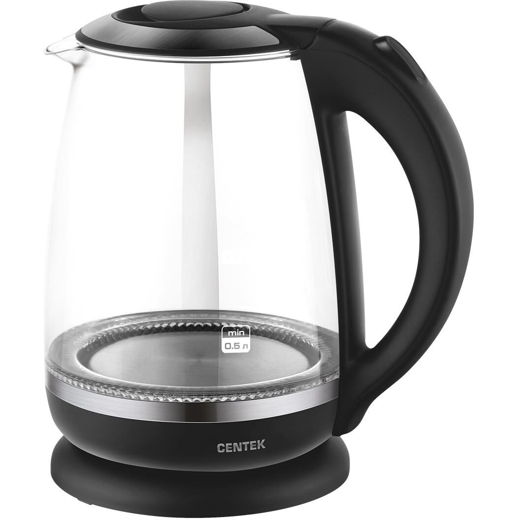 Чайник Centek CT-0015 Мощность2200 Вт Объем2,0 л Защита от включения без воды Внутренняя LED-подсветка Скрытый нагревательный элемент Кнопка включения на ручке Высокопрочная стеклянная колба