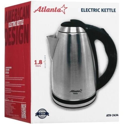 Чайник электрический ATLANTA ATH-2434 (1,8л. металл) черный\серебристый