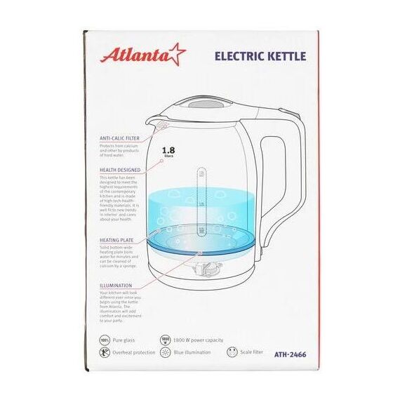 Чайник электрический ATLANTA ATH-2466 (1,8л. стекло) белый