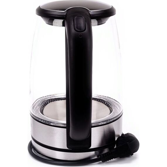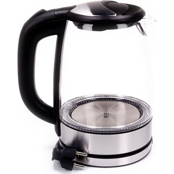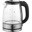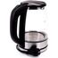 Объем 1,7 л Номинальная мощность 2200 Вт Описание Закрытый нагревательный элемент из нержавеющей стали Корпус из жаропрочного стекла Вращение корпуса на 360° Шкала уровня воды Внутренняя LED-подсветка Съемный фильтр Удобное хранение шнура Цвет: черный Многоуровневая защита: автоматическое отключение при закипании отключение при снятии чайника с базы отключение при недостаточном количестве воды