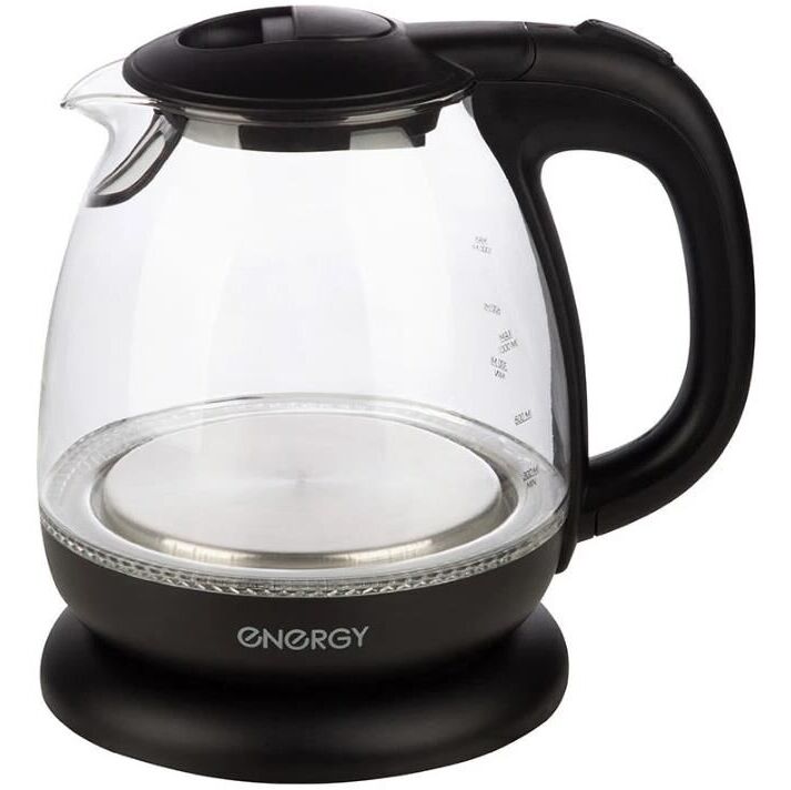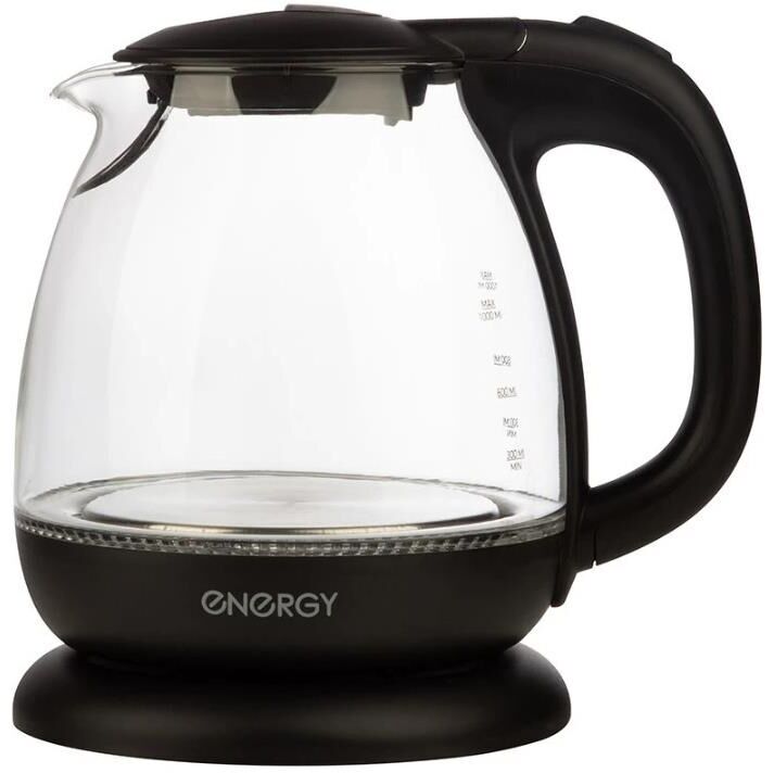 ENERGY E-296 стекло черный Объем 1 л Корпус - стекло, пластик Автоматический выключатель Защита от работы без воды Возможность поворота на подставке 360 Закрытый нагревательный элемент из нержавеющей стали Внутренняя подсветка Мощность 900-1100 Вт Напряжение 220-240В, 50/60 Гц
