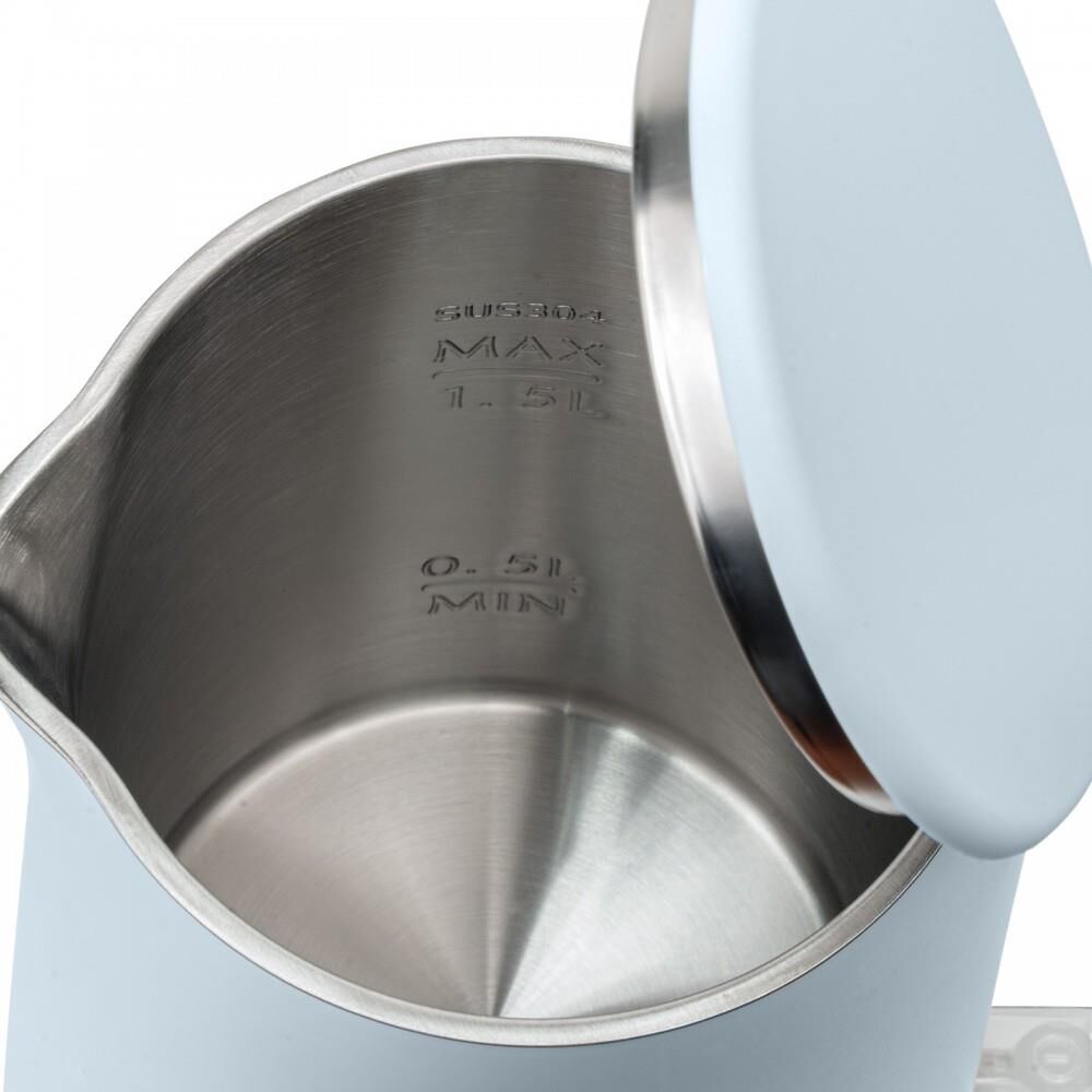 GALAXY GL 0327 голубой Номинальная потребляемая мощность 1800 Вт Объем 1,5 л Скрытый нагревательный элемент Двойная стенка из нержавеющей стали 18/10 и пищевого пластика Автоотключение при закипании Автоотключение при отсутствии воды Указатель максимального уровня воды Индикатор работы Длина шнура питания 78 см Гарантия 2 года