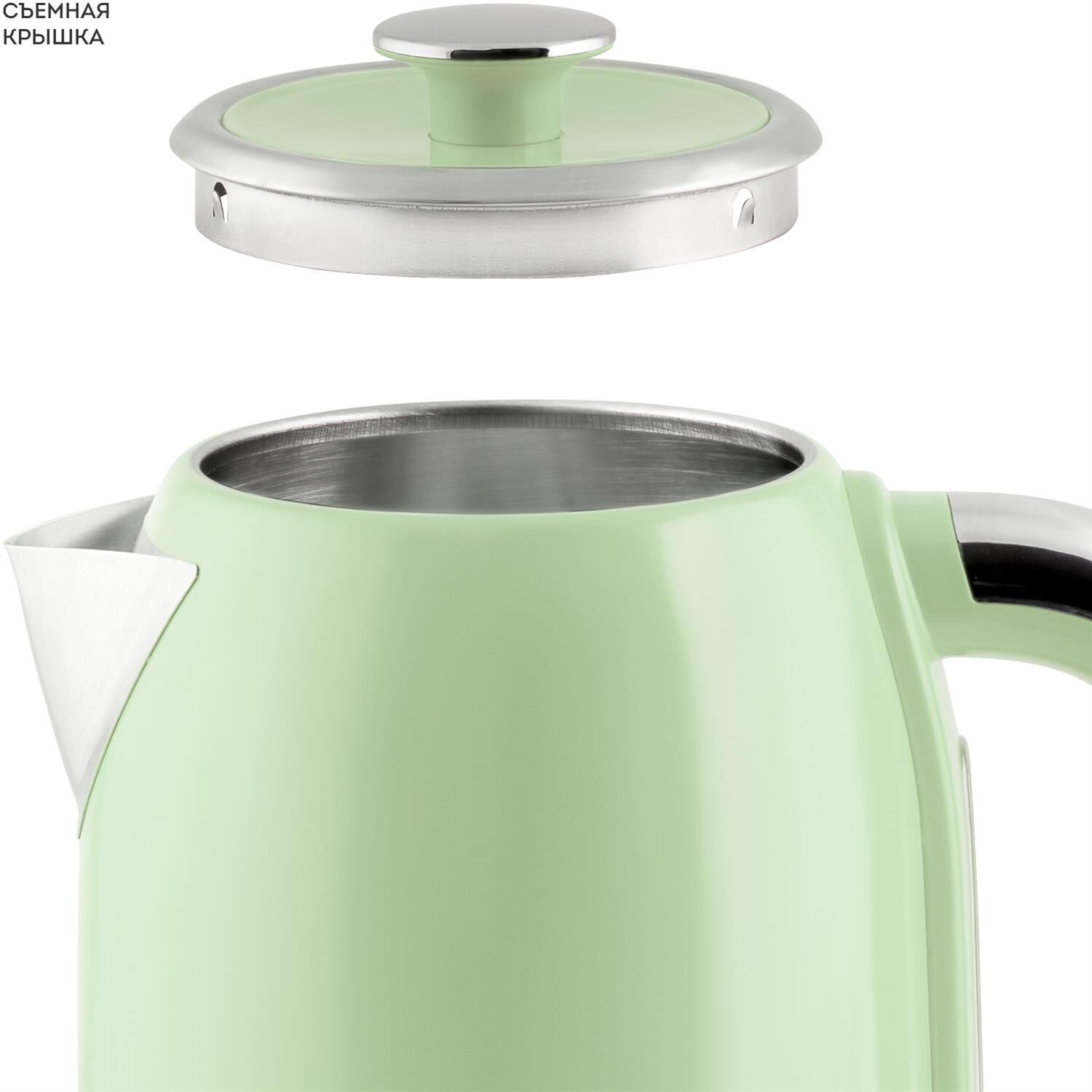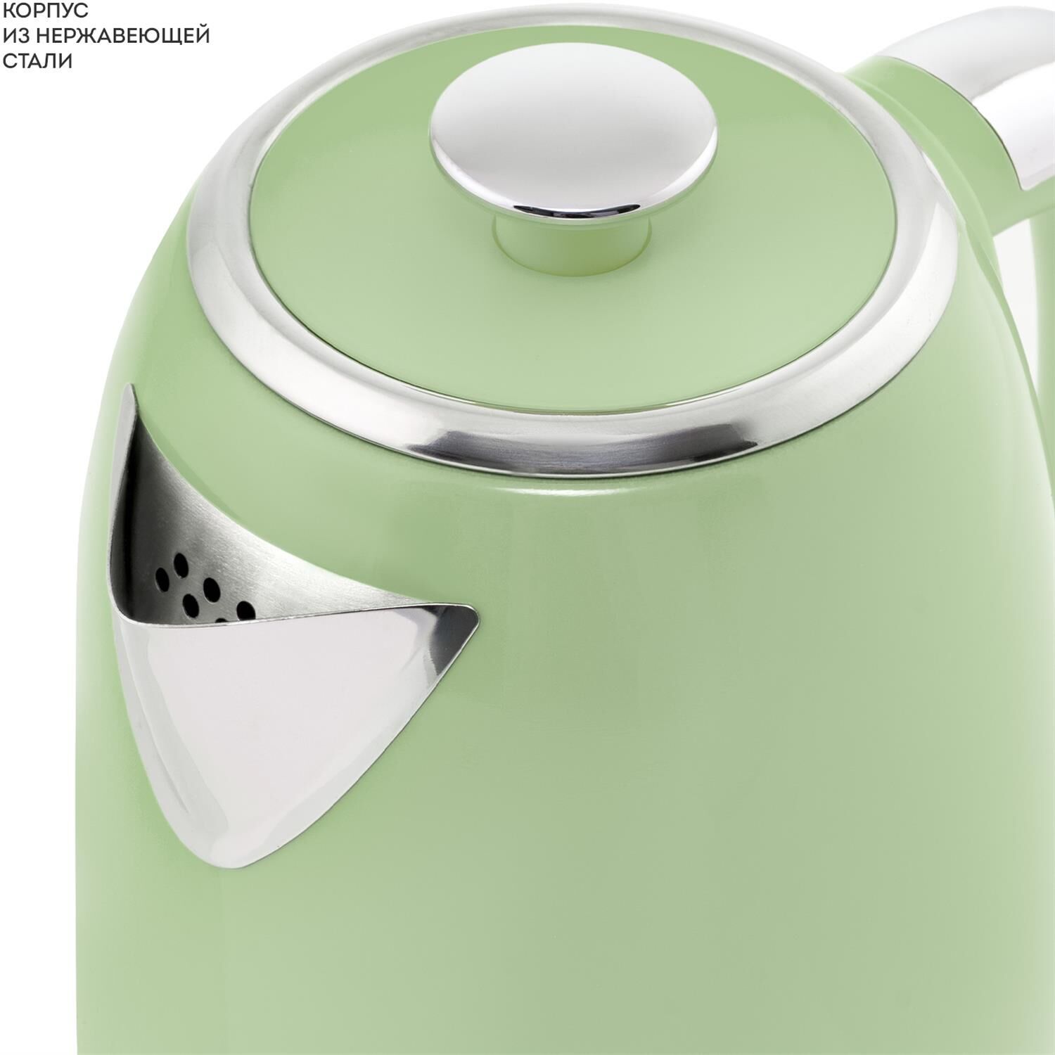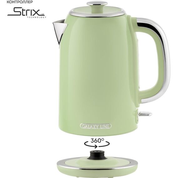Чайник электрический Galaxy LINE GL 0344, райская олива, металл, 2200 Вт, 1,7 л, корпус из нержавеющей стали AISI 304, STRIX контроллер, шкала уровня воды