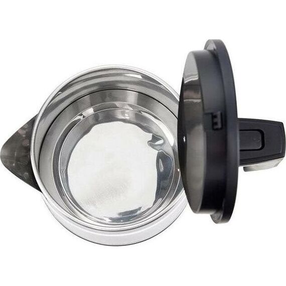 Объем 1.8л, Мощность 1800Вт. Автовыключение при закипании. Защита от включения без воды. Защита от перегрева. Поворачивающийся корпус (360°). Дисковый нагревательный элемент. Двойная термоизоляция корпуса. Внутреняя колба — нержавеющая сталь. Внешняя колба — деодорированный пластик. Индикация включения. Металлическая защита крышки. Рабочее напряжение 220В / 50Гц.