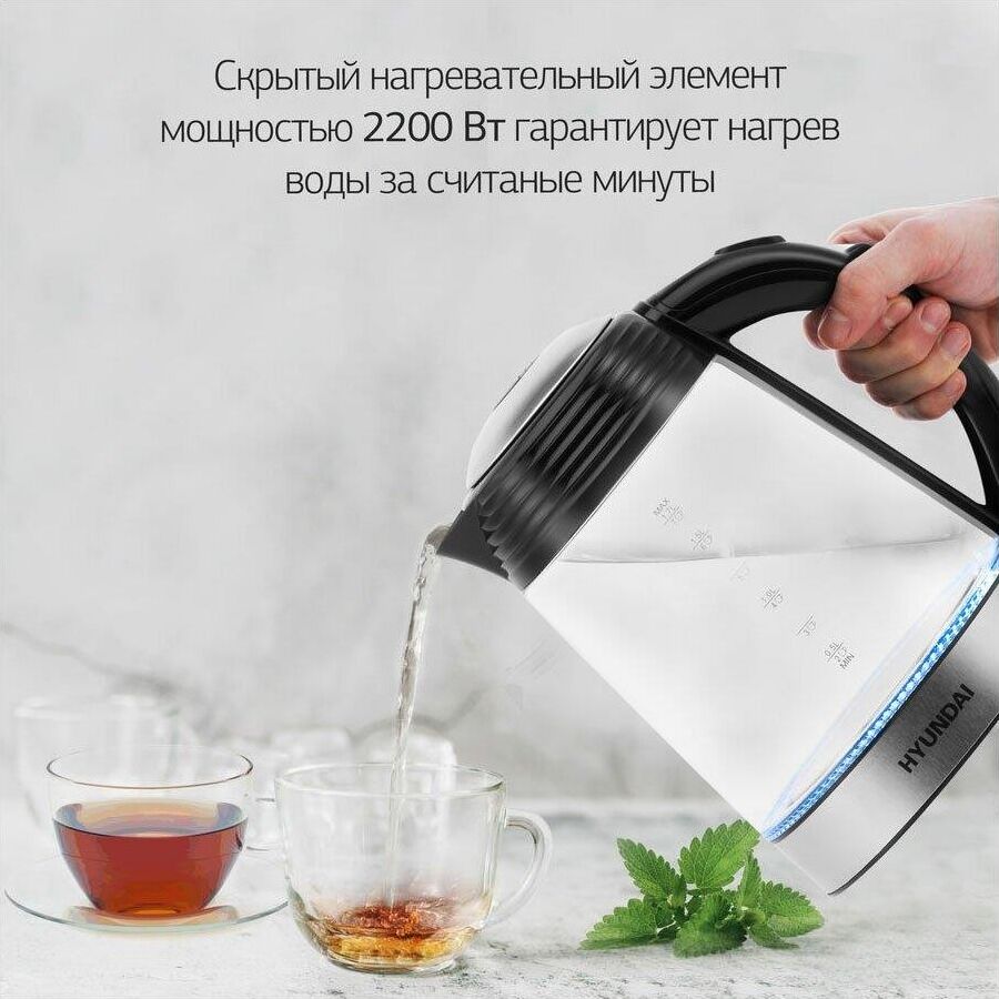 Мощность 2200 Вт Максимальный объем 1.7 л Нагревательный элемент скрытый Индикатор включения Индикатор уровня воды Фильтр от накипи Автоматическое отключение Кнопка открытия крышки Подставка 360 градусов Защита от включения без воды Подсветка воды Материал корпуса стекло Цвет черный Гарантия 24 мес.