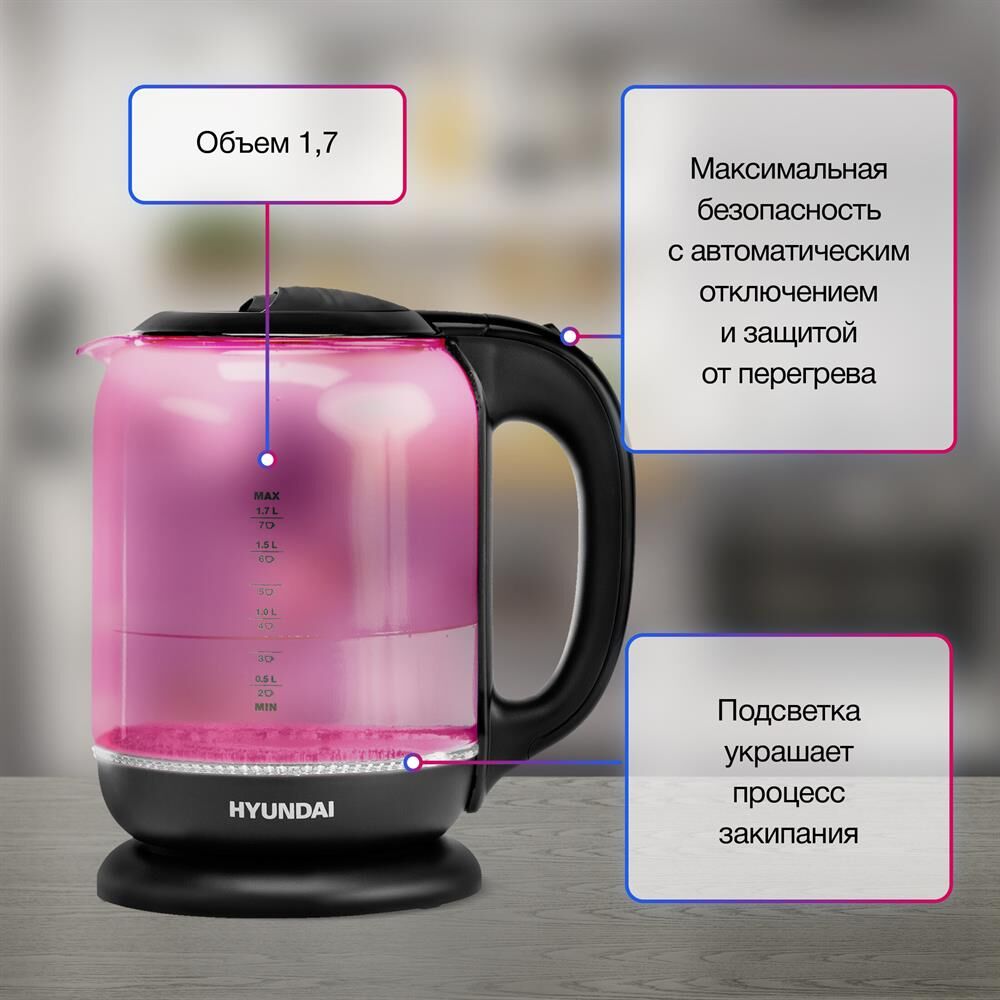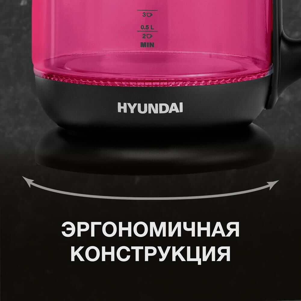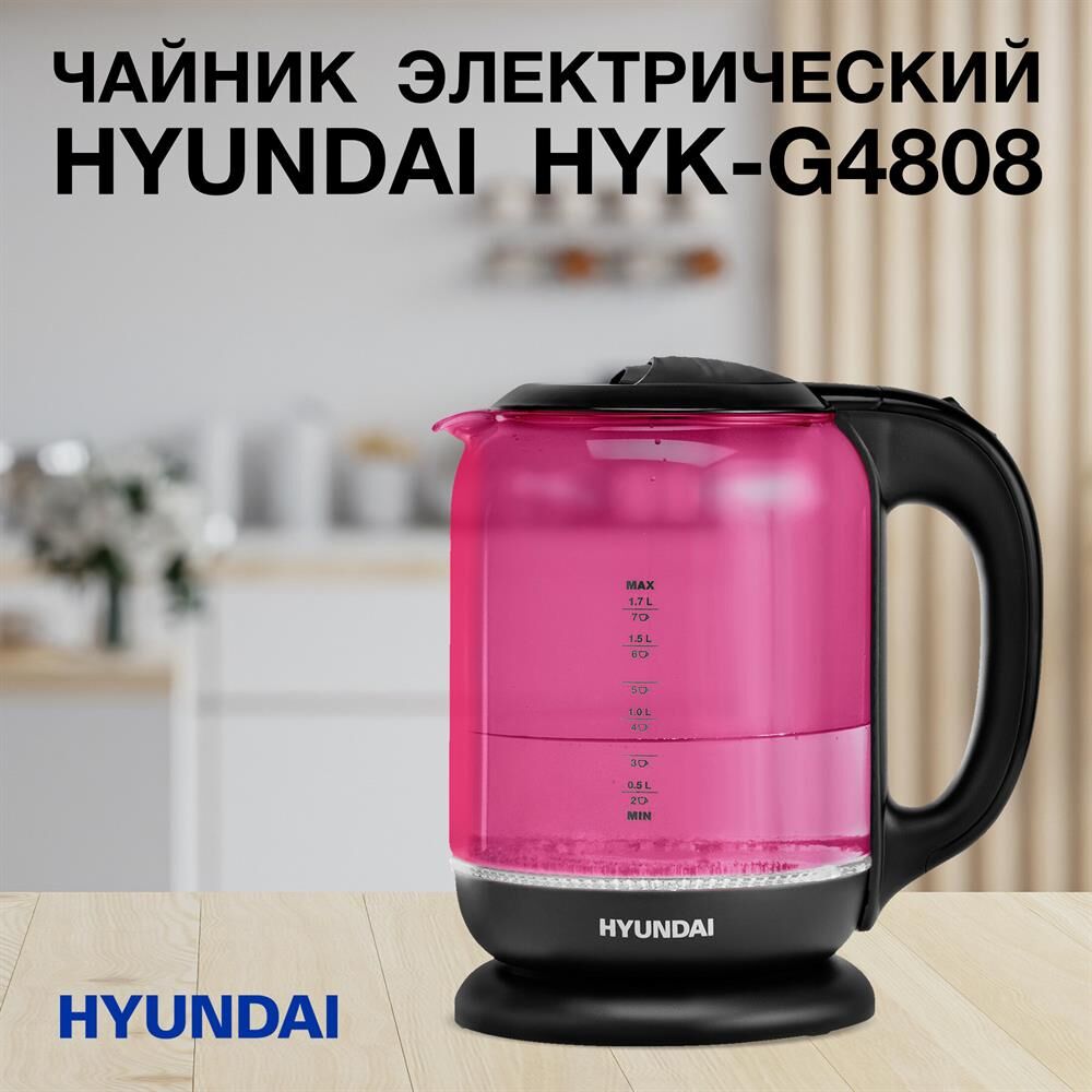 Чайник электрический HYUNDAI HYK-G4808 1.8л. 2200Вт малиновый/черный (стекло)