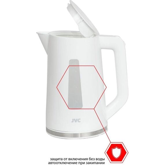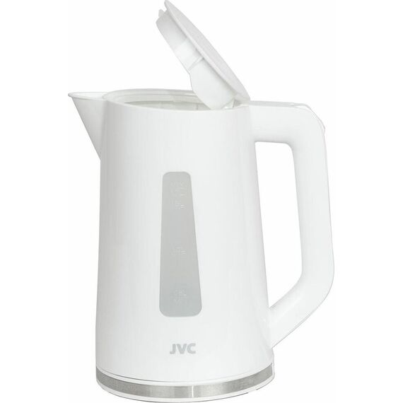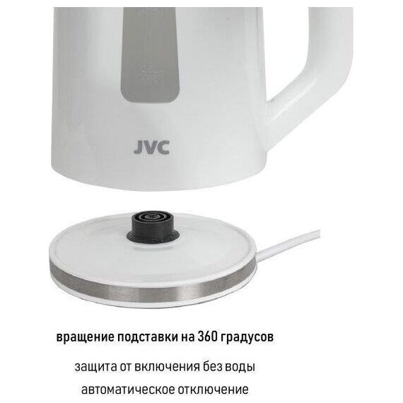 Чайник электрический, объем 1,7л, максимальная мощность 2200 Вт, автоматическое открывание крышки, съемный фильтр от накипи, защита от включения без воды, автоматическое отключение, индикация включения, индикатор уровня воды, подставка с возможностью вращения на 360 градусов, хранение электрошнура в подставке, материал корпуса: пластик, цвет: белый