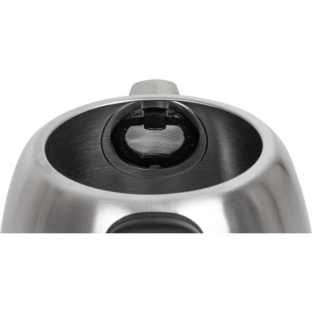 Чайник электрический, объем 1,7л, максимальная мощность 2200 Вт, светодиодная подсветка, индикатор уровня воды, индикатор включения, новая форма носика, съемный фильтр от накипи, съемная крышка, защита от включения без воды, автоматическое отключение при закипании, вращение на 360 градусов, хранение электрошнура в подставке, корпус из нержавеющей стали