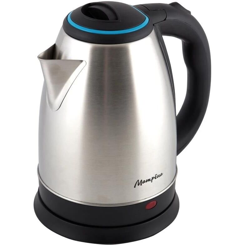 МАТРЁНА MA-001 нержавейка голубой "Объем: 1,8л Корпус из нержавеющей стали (промо) Автоотключение при закипании Защита от работы без воды Возможность поворота на подставке на 360 Закрытый нагревательный элемент из нержавеющей стали Мощность: 1500Вт Напряжение: 220-240В, 50-60Гц"
