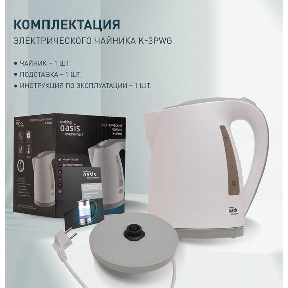 Чайник электрический OASIS K-3PWG белый+серый, 1,7л