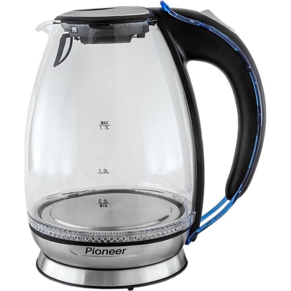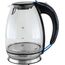 Максимальный объем, л.: 1,7 Тип нагревательного элемента: диск Подставка с вращением на 360 : есть Фильтр: съемный моющийся Отключение при закипании: есть Отключение при отсутствии воды: есть Индикатор уровня воды: есть Подсветка: есть Комплектация: чайник, гарантийный талон, инструкция на русском языке Материал корпуса: термостойкое стекло Цвет: черный с синим Максимальная потребляемая мощность, Вт.: 2200 Электропитание, в., Гц.: 220-240, 50