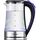 Чайник электрический. Объем: 1,8 литра, Мощность: 1800 Вт, Скрытый нагревательный элемент, Материал корпуса: стекло, Цвет: Черный/серебро, Индикация: включения / уровня воды, Автоотключение, защита от включения без воды, кнопка открытия крышки, подсветка воды.