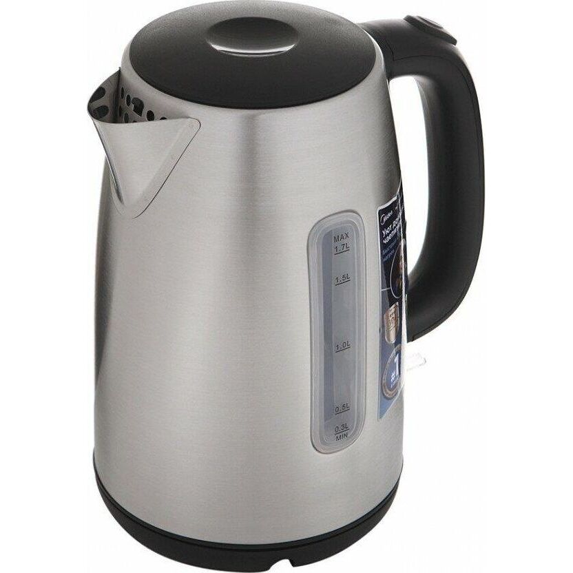 Тип электрочайник. Объем 1.7 л. Потребляемая мощность 2200 Вт. Нагревательный элемент скрытый. Покрытие нагревательного элемента нержавеющая сталь. Индикатор уровня воды. Открывание крышки кнопкой. Материал сталь.