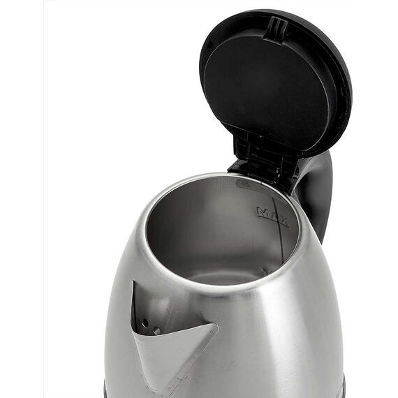 Объем 1,5 л. Номинальная потребляемая мощность 1800 Вт. Закрытый нагревательный элемент. Корпус из высококачественной нержавеющей стали. Матовая полировка. Вращение корпуса на 360°. Цвет базы, крышки и ручки: черный. Световой индикатор работы. Отсек для хранения электрошнура. Автоматическое отключение при закипании. Блокировка включения без воды.