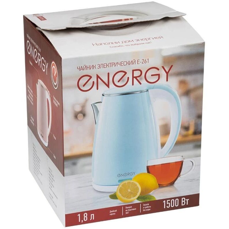 Объем 1,8 л Двойной корпус (нержавеющая сталь внутри, пластик снаружи) Закрытый нагревательный элемент из нержавеющей стали Поворот на подставке 360° Защита от работы без воды Автоматический выключатель Световой индикатор работы Место для хранения шнура Мощность 1500 Вт