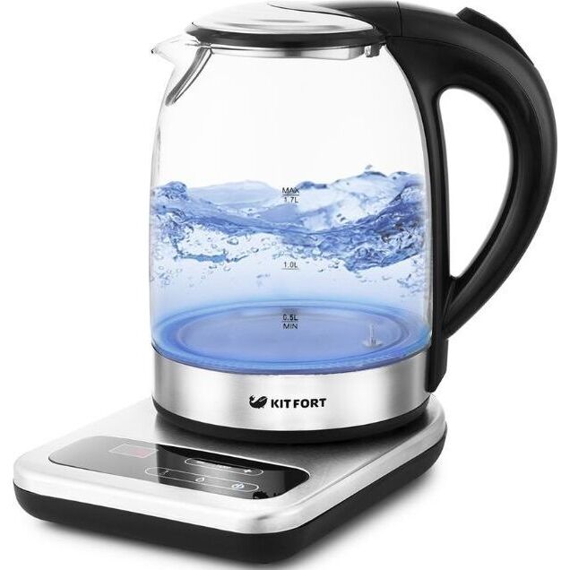 Чайник KITFORT КТ-657 нержавеющая сталь/черный (стекло)