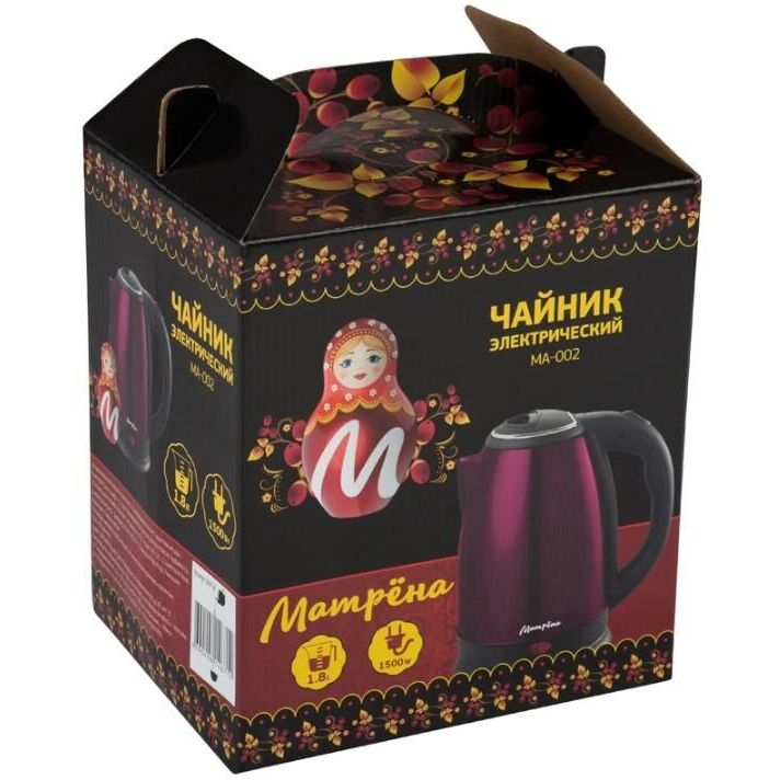 Чайник МАТРЁНА cэлектрический (1,8 л) стальной бордовый