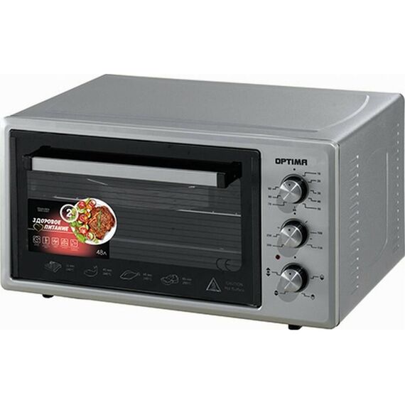Духовка электрическая OPTIMA OF-48G (48л, таймер,лампа,противень 2шт., решетка, серый, 1600Вт)Термостат: 50-300 *С.Гриль.Количество режимов: 3;