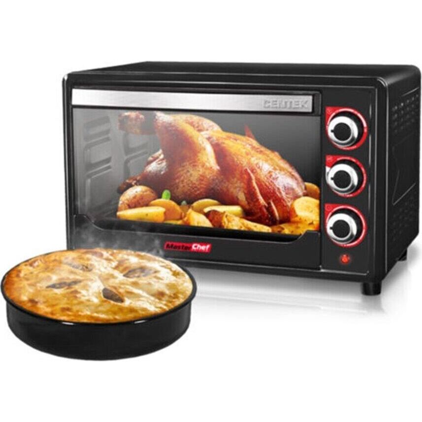 Жарочный шкаф Centek CT-1530-36 (черн)Мощность1600 Вт Объем жарочной камеры36 л Регулируемая температурадо 320 °С 4 режима приготовления Звуковой сигнал готовности Световой индикатор работы Хромированные поворотные переключатели Усиленные нагревательные элементы Плавный поворотный таймер на 90 мин с автоотключением и функцией непрерывной работы Комплект аксессуаров Круглый противень 23 см Жарочная решетка Стальной эмалированный противень Крюк для вынимания противня