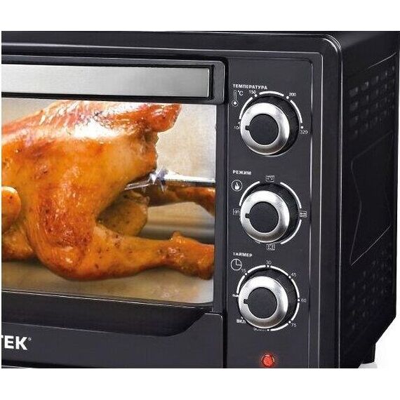 CENTEK CT-1530-36 GRILL (черн) Мощность1600 Вт Объем жарочной камеры36 л Поворотный гриль со стальным вертелем Регулируемая температурадо 320 °С 4 режима приготовления Звуковой сигнал готовности Световой индикатор работы Хромированные поворотные переключатели Усиленные нагревательные элементы Плавный поворотный таймер на 90 мин с автоотключением и функцией непрерывной работы Комплект аксессуаров Жарочная решетка Стальной эмалированный противень Крюк для вынимания противня Стальной вертел Рукоятка вертела