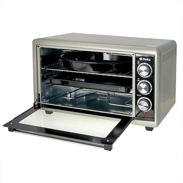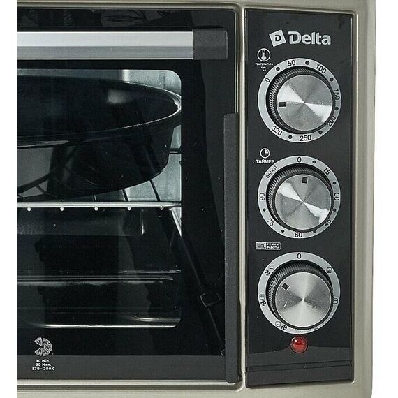 Параметры Номинальная потребляемая мощность 1500 Вт Внутренний объем 55 л Тип нагревательного элемента ТЭН Количество ТЭНов 2 штуки Мощность ТЭНа 750 Вт Мощность вентилятора (конвекция) 13 Вт Время разогрева до рабочей температуры 10 минут Регулируемый термостат 50-320°С Таймер 0-90 минут Размеры прямоугольного противня 43х35х4 см Размеры круглого противня Ø42х5,5 см Описание Духовка электрическая предназначена для приготовления мясных, рыбных, овощных блюд, а также выпечки изделий из теста в бытовых и аналогичных условиях Цвет: серый Шесть режимов работы Режим конвекции обеспечивает равномерное приготовление блюда за счет термической обработки продуктов потоком горячего воздуха Два ТЭНа повышенной мощности для равномерного нагрева Специальное покрытие внутренней камеры обеспечивает концентрацию тепла и облегчает чистку и уход Дверца из жаропрочного стекла Выдвижная ручка для компактного хранения