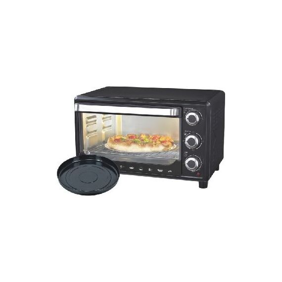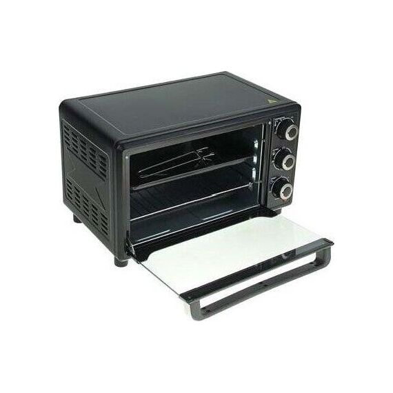 27л, духовка 1500Вт, механ.управление, 3 режима работы духовки (верх, низ, верх+низ), таймер на 60 минут, регулировка температуры духовки, комплектация - металлическая решетка, противень, круглая форма для выпечки (230x50мм), ухват. Цвет: чёрный.