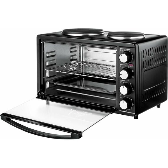 Объем 30 л. Тип управления механический. Количество программ 6. Духовка Да. Максимальная температура 250 *С. Тип гриля ТЭН. Индикация включения Да. Индикация текущей температуры Да. Индикация заданной температуры Да. Индикация времени до конца программы Да. Индикация режима работы Да. Таймер включения / выключения Да. Звуковой сигнал Да. Таймер отключения (время) до 120 минут. Звуковой таймер Да. Материал корпуса металл. Материал фронтальной панели металл/ стекло. Внутреннее покрытие эмаль. Открытие дверцы откидная. Количество нагревательных элементов 4 шт. Встроенные электрические конфорки Да. Духовка Стекло дверцы духовки 1-слойное. Максимальная мощность 1500 Вт. Длина сетевого шнура 0.9 м.