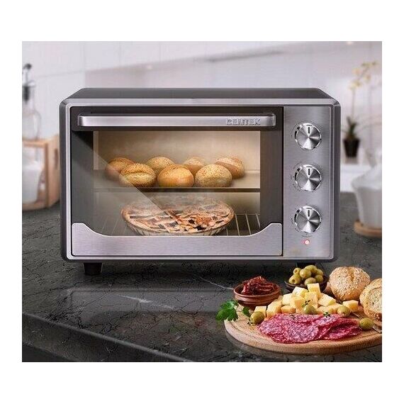 Мощность 2000 Вт Объем 50 л Быстрый нагрев от 100 до 320 °С Кол-во режимов 4 Таймер 90 мин Особенности LED-индикаторы работы, Звуковой сигнал готовности Комплект аксессуаров Жарочная решетка, Круглый противень (30 см), Крюк для вынимания противня, Эмалированный противень