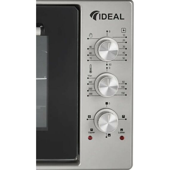 Объем духовки - 50 литров; Потребляемая мощность - 1600 ВТ; Режимы работы - Верхний + нижний нагрев, Верхний нагрев, Нижний нагрев Таймер - Звуковой, с отключением; Управление мини-печью - Механическое; Внутреннее покрытие – Эмаль; Макс. Температура - 300°С; Количество режимов работы – 3; Тип питания – Электрический; Гарантийный срок - 1 год; Страна-изготовитель – Узбекистан; Тип - Мини-печь; Системы защиты - Автовыключение; Бренд - IDEAL; Цвет – Серый; Количество стекол дверцы духовки – 2; Размеры 580*290*440 мм; Вес товара 16000г.