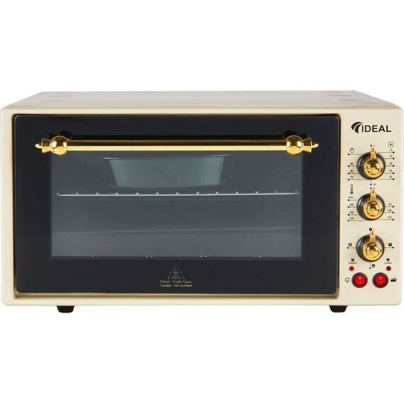 Объем духовки - 50 литров; Потребляемая мощность - 1600 ВТ; Режимы работы - Верхний + нижний нагрев, Верхний нагрев, Нижний нагрев; Вертел, гриль; Таймер - Звуковой, с отключением; Управление мини-печью - Механическое; Внутреннее покрытие – Эмаль; Макс. Температура - 300°С; Количество режимов работы – 4; Тип питания – Электрический; Гарантийный срок - 1 год; Страна-изготовитель – Узбекистан; Тип - Мини-печь; Системы защиты - Автовыключение; Бренд - IDEAL; Цвет – Молочный; Ретро дизайн; Количество стекол дверцы духовки – 2; Размеры 580*290*440 мм; Вес товара 16000г.